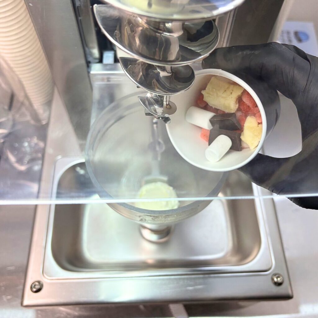 ジェラートとフレーバートッピングを入れて混ぜるだけ。